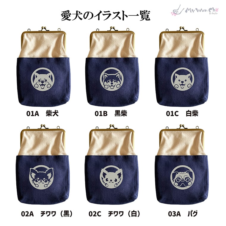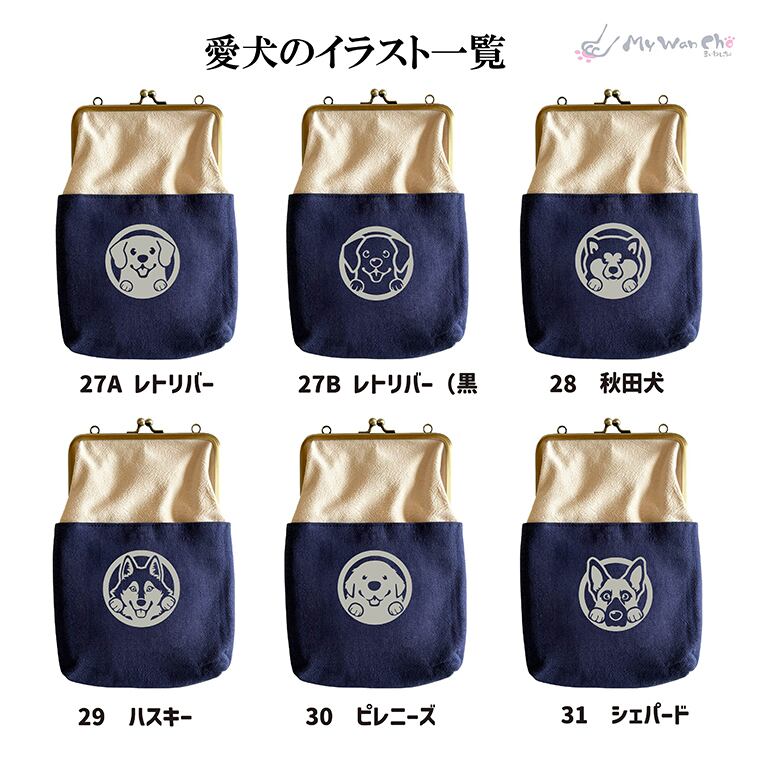 # 選べる愛犬反射材 がま口ショルダーバッグ 52犬種