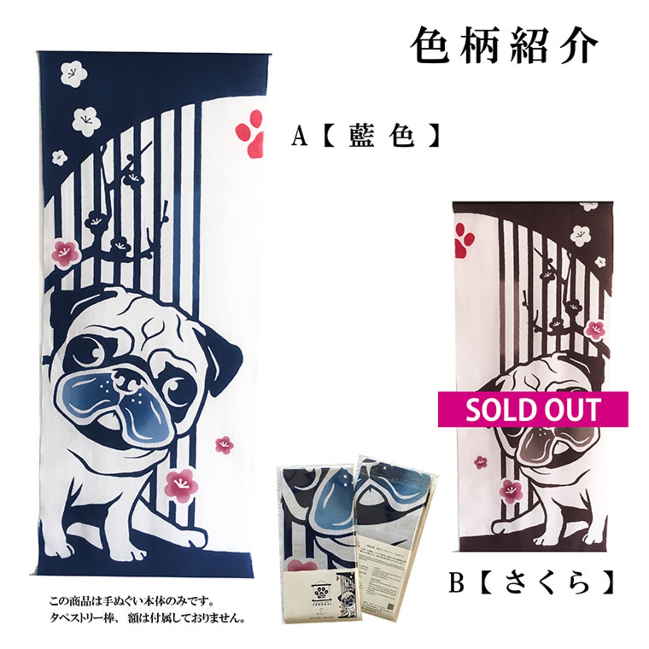 手ぬぐい パグ わんたぺ 浜松注染 青のみ
