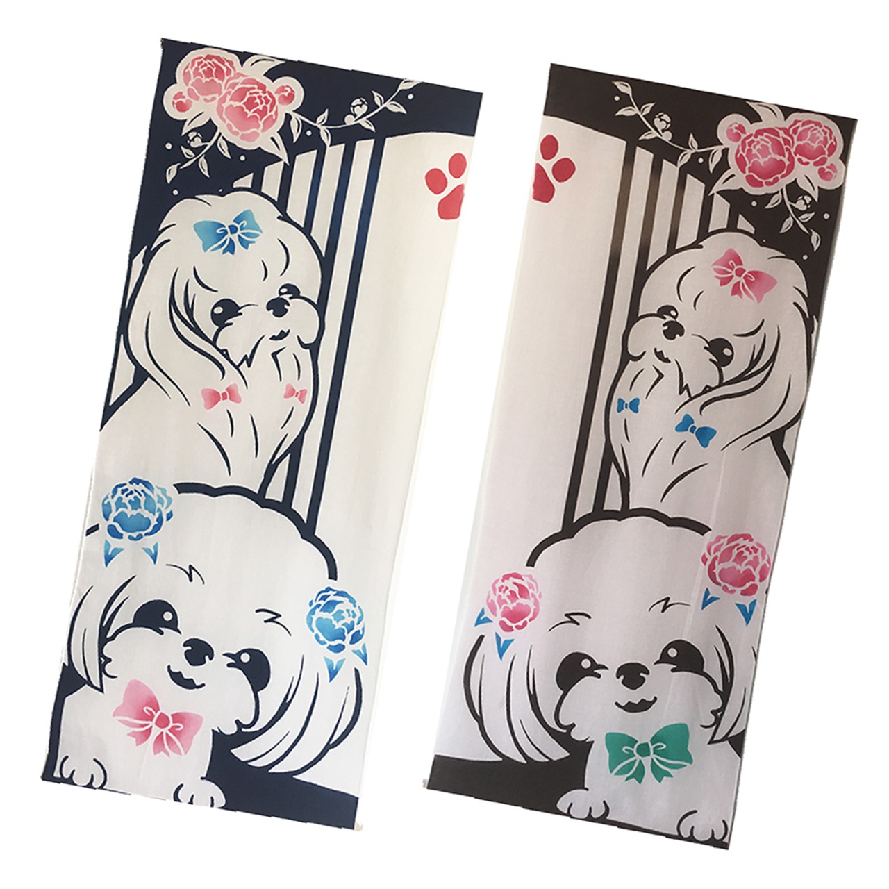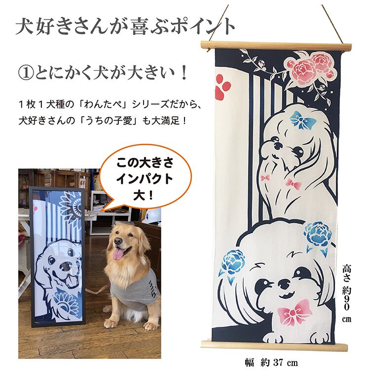 マルチーズの手ぬぐいタペストリー。