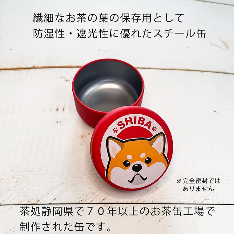 お茶所静岡で作られた、スチール製の柴犬おやつ缶です。