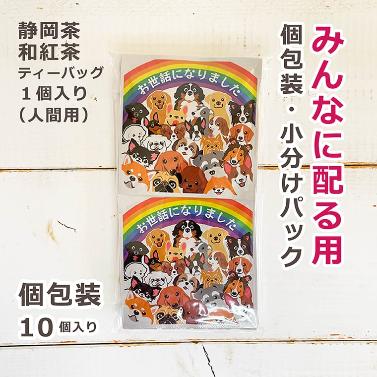 お世話になりました 香典返し 皆に配る個包装 メッセージ茶 和紅茶 ティーバッグ1個入り 犬 10個セット