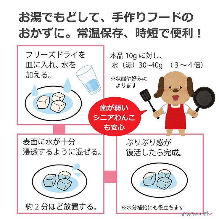 不飽和脂肪酸(DHA・EPA)、鉄分、タウリン、ビタミンも含有。身を丁寧にカットし、無添加でフリーズドライしました。